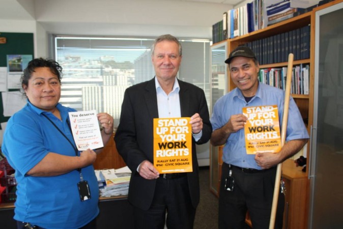 Amnesty NZ Director Grant Bayldon and Chair Helen Shorthouse with Keith Locke (middle)